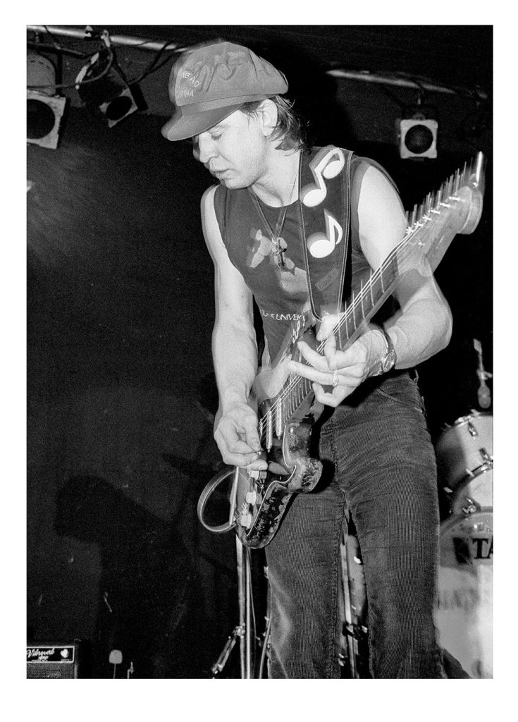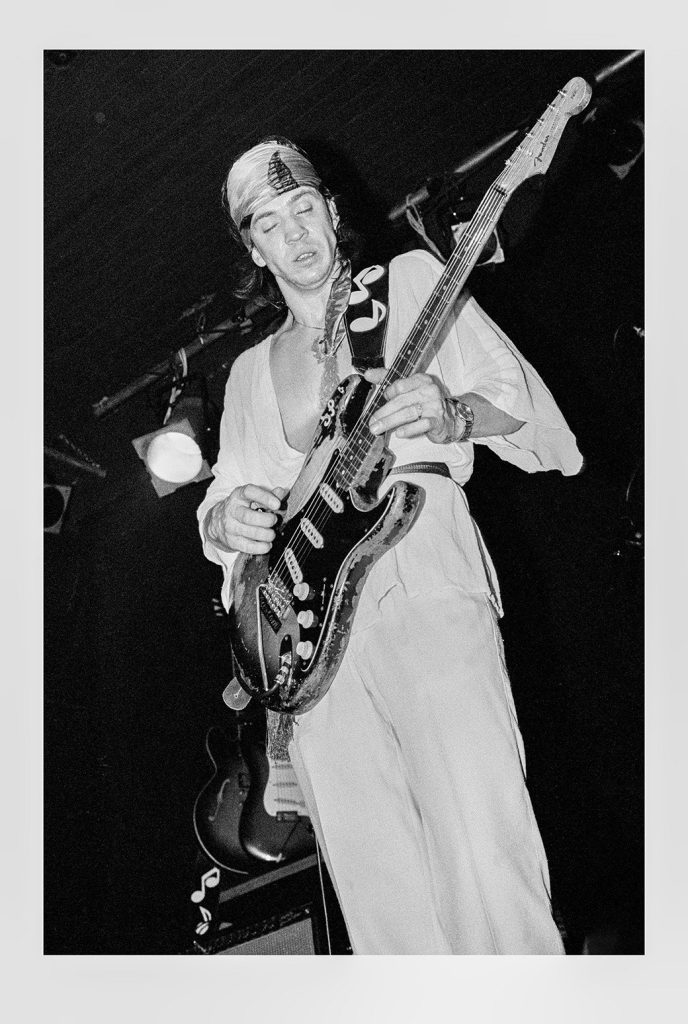 This image was captured the first time that I saw Stevie Ray Vaughan. I’d met him at the soundcheck a few hours before the show. It appeared with a review a few days later in “Public News”, a very small independent New Wave/Punk paper in Houston, Texas, that existed mostly in the 1980s. All involved, including me, had aspirations and hopes for wider distribution and a more professionally printed publication, but it was not to be.