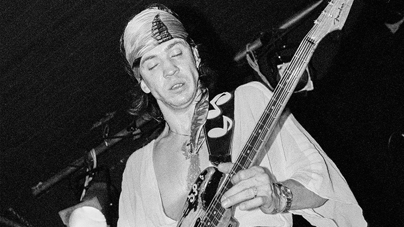 And, in this particular image, that flash hit Number One’s gigantic strings like the sun bouncing off of train rails. Look at the neck and watch him bend them.